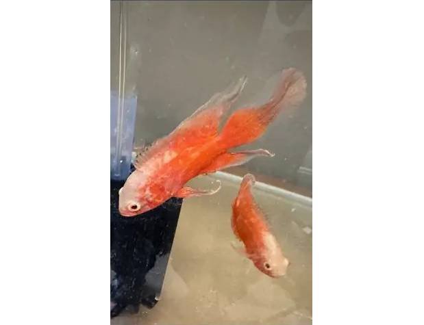 Red Chili Oscars are known for their interactive nature and can recognize their owners, often greeting them at the tank’s surface. They are carnivorous and have a hearty appetite, typically feeding on high-quality pellets, insects, and small fish. Due to their size and territorial behavior, they thrive best in a spacious tank with sturdy decor and stable water conditions.